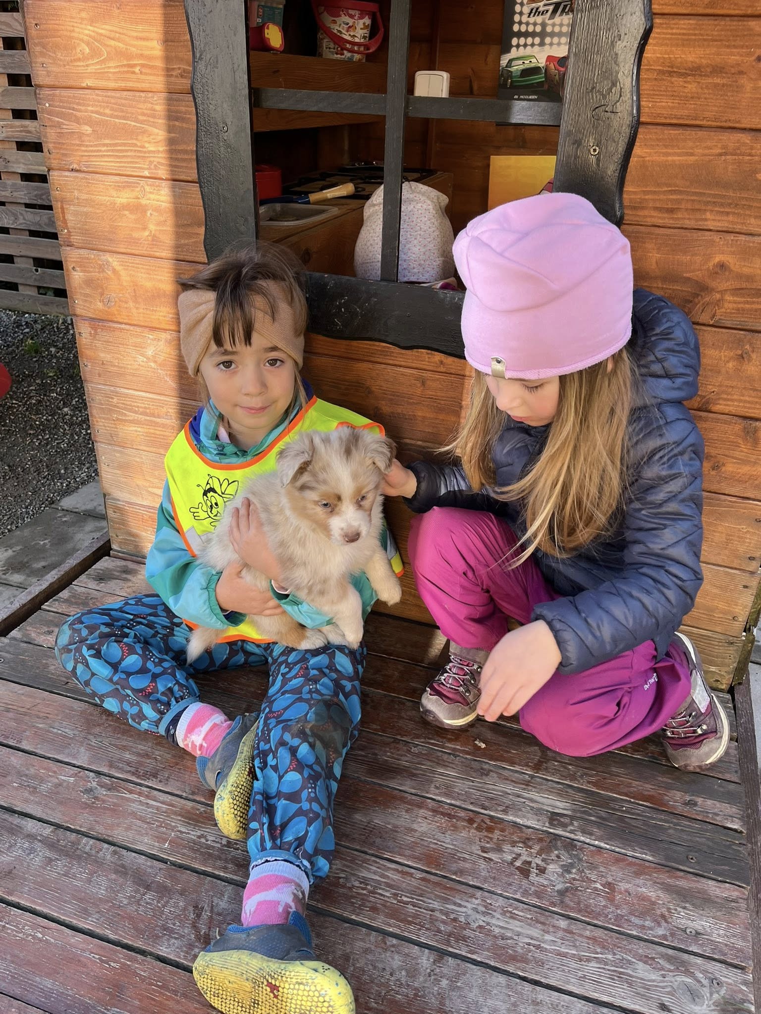 Pořídili jsme štěňátkům novou dřevěnou hernu. Díky ní mají možnost objevovat, hrát si a zároveň rozvíjet své dovednosti v bezpečném prostředí.
